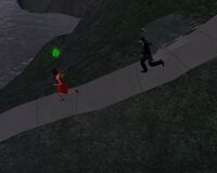 Other special abilities include the ability to "hunt." By clicking on a blank space of terrain on a lot populated by other Sims, the vampire volition receive the option to chase. Hunting gives a thermal aureola around the victim[ten] which reveals which Sim has the best plasma.[nine] This also gives them a tag in the map view,[v] and an aura around the target'southward portrait in the Relationships tab. When a vampire has a target, they will get a wish to potable from that Sim. Drinking from the target not only refills the Thirst bar, but also grants a moodlet which prevents the Thirst bar from decomposable until the moodlet expires.